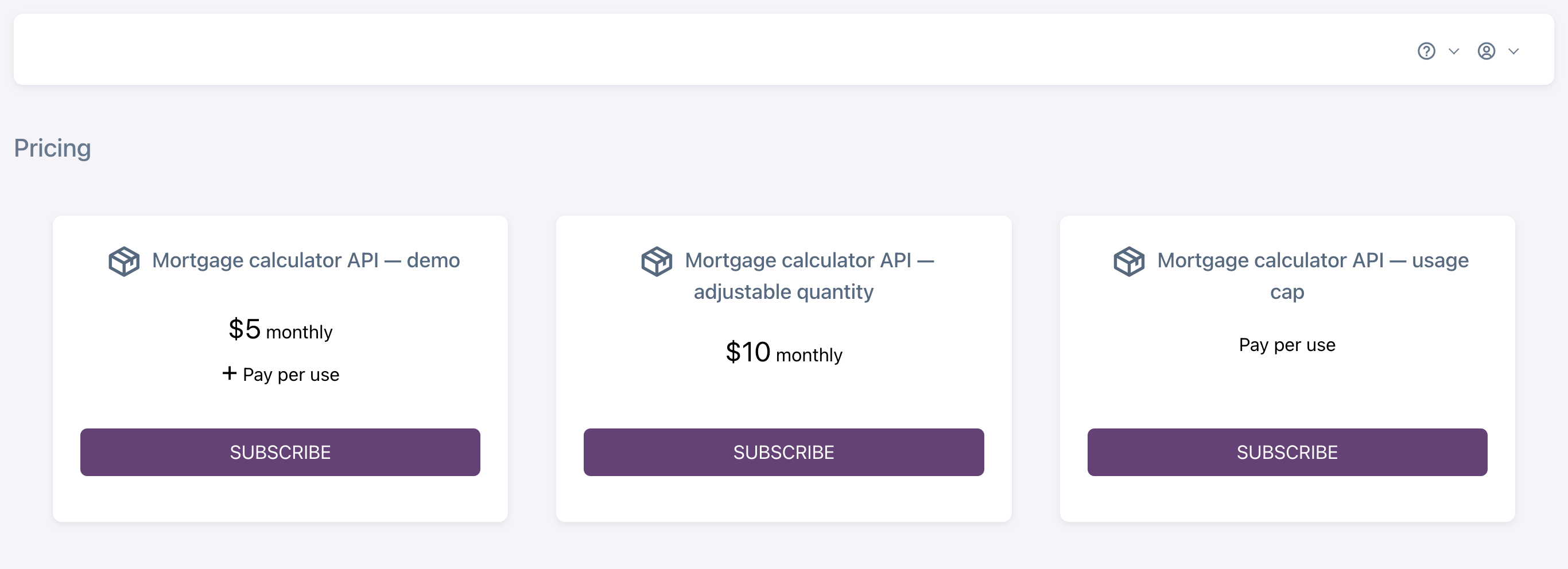 Pricing page displays your selected products including prices, descriptions, and “Subscribe” buttons.